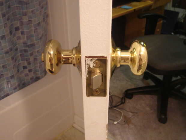 El concepto es simple, que tienes una habitación o cuarto de baño con uno de ésos botón o cerraduras twisty, como se muestra en la imagen. Quite el montaje de la perilla de puerta y lo pones de nuevo por, pero al revés! Esto deja la parte locky en el exterior de la sala, donde el preso no puede acceder a él para liberarlos del uno mismo de su celda recién encontrado. Ahora más cerraduras de hecho tienen un pequeño agujero o algo que puede vibración excesiva en un clip de papel para abrir la puerta. Le mostrará cómo fácilmente desactivar esta función temporalmente para que esta broma sea perfecto.