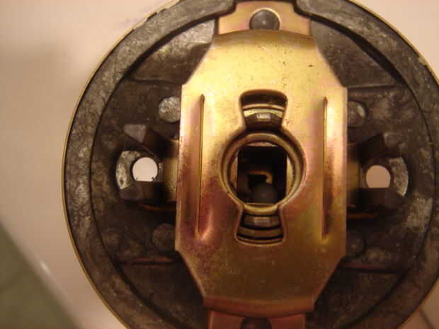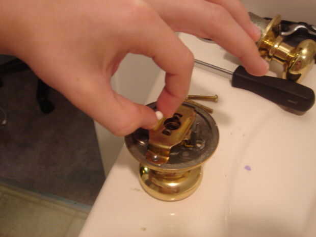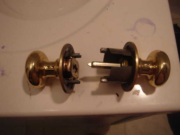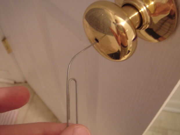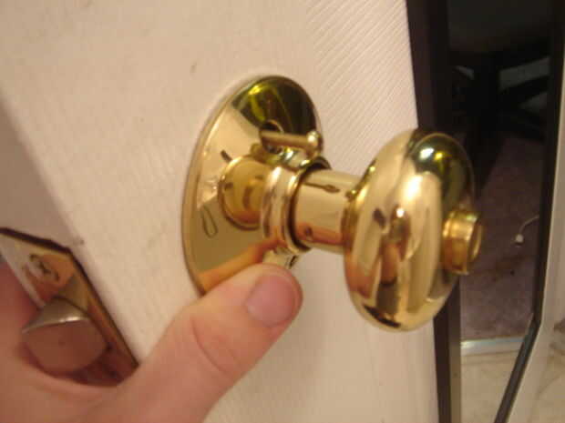 Coloque la BB o fragmento similar en el tubo abierto de la perilla con el botón en él. (Creo que sólo los mandos botón tienen esto, no estoy seguro ya que nunca he tomado aparte ni que estoy usando una perilla de twisty.) Esto deshabilitará al preso del desbloqueo de la puerta con un clip por el agujerito.