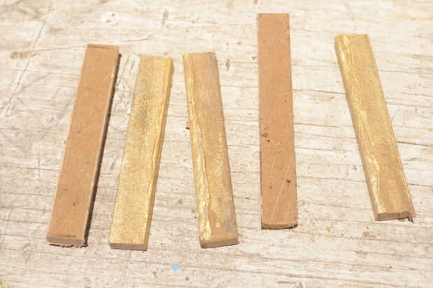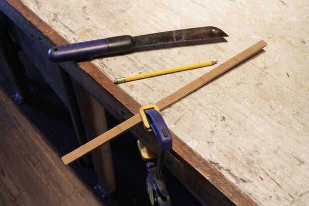 Encontré un pedazo de madera, que tengo la sospecha de ser parte de un viejo cajón ajuste y corte en cinco 3" piezas. Estos se convertiría en la parte estructural de mi nuevas bombillas.
