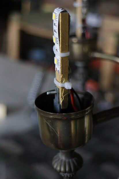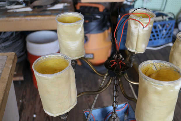 Atasca las tazas con mi presión improvisados en cada bombilla de la lámpara.