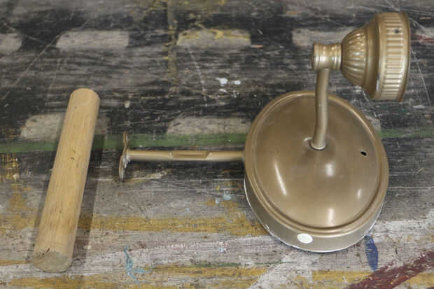 Esta unidad se hace con salvado de cobre y accesorios de plomería de bronce. Creo que artículos como este en los mercados de pulgas y tiendas de segunda mano. Esto es hecha enteramente de vidrio y metal. Todas las conexiones de metal son difíciles de