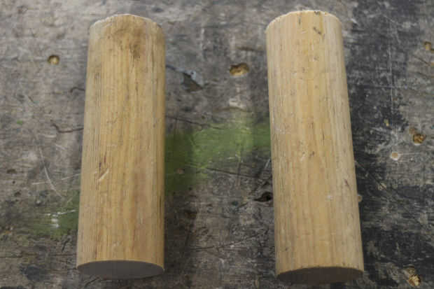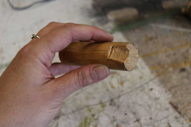 Al igual que los otros bulbos, he utilizado un taco de madera. Para obtener la barra pasador para anidar bien dentro de la abertura para la luz, tuve que Cincele una persecución pequeño alambre para la tira de LED.