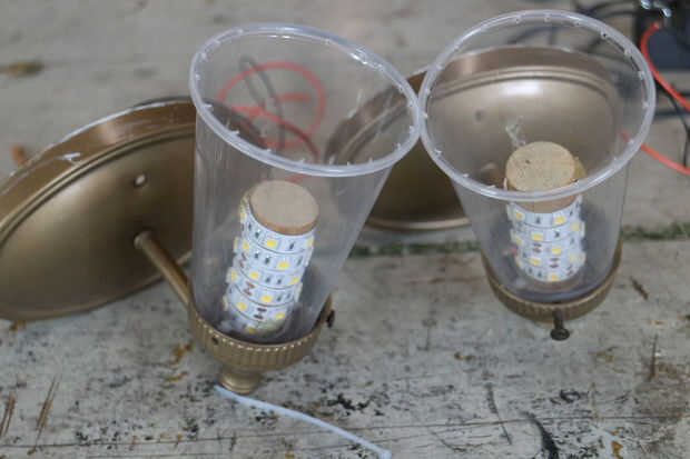 Utilizando la misma técnica de Copa había hecho cortinas para los apliques después las bombillas estaban en lugar.