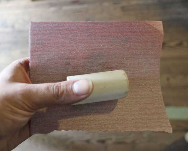 Encontré un taco corto y lijar un poco la pintura con papel de grano arena 150. Pensé que esto podría ayudar el palillo de tiras de LED un poco mejor a él, pero en última instancia el adhesivo en el LED tira tipo de golpes. (Gracias al cielo por ataduras de cremallera).