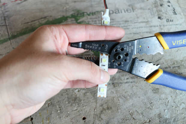 Cortar las tiras de LED tiras hasta una longitud que encajaría en la vara de la clavija y se trasladó a cableado.