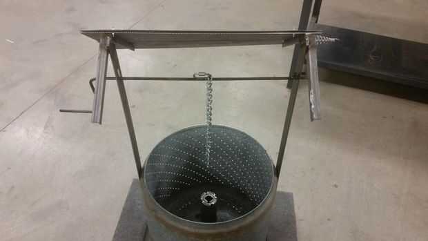 Perforado un agujero en un lado para sujetar la varilla de manivela de cubo. Es el lado que adornado con topes soldados en ambos lados para la lavadora y el bloqueo Appliqués.