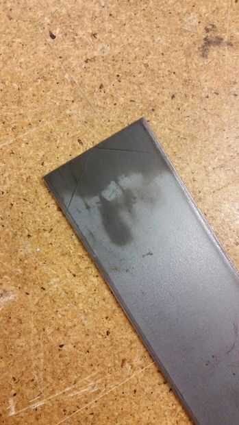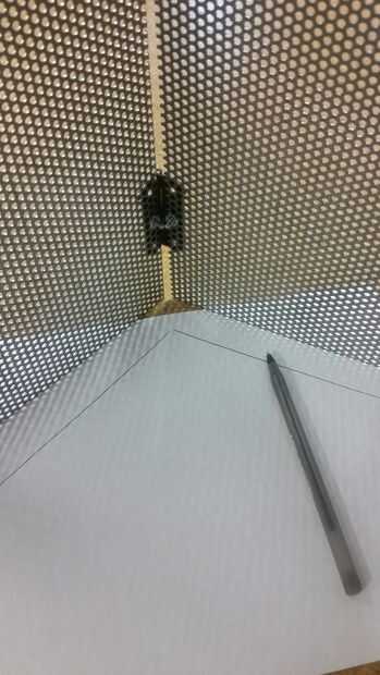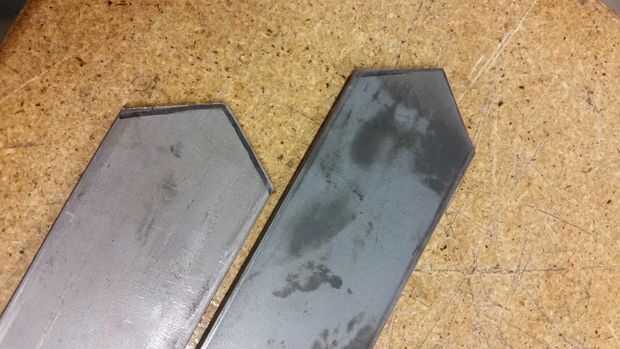 En primer lugar, cerré los paneles de la azotea hasta que naturalmente se detuvieron en el alcance máximo de las bisagras. No soy nadie para preocuparse por el grado real del ángulo, sólo necesitaba para asegurarse de que ellos eran los mismos. He trazado el ángulo, stenciled en 2 piezas de 2 in x 24 in x 1/ 8 en barra. De esa manera puedo cortar la barra de valores para el ángulo perfecto.