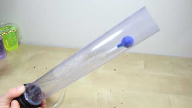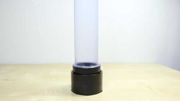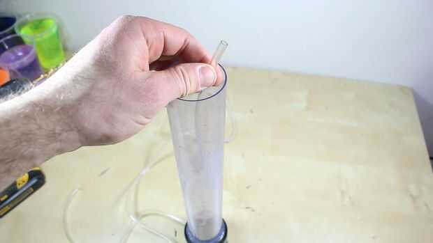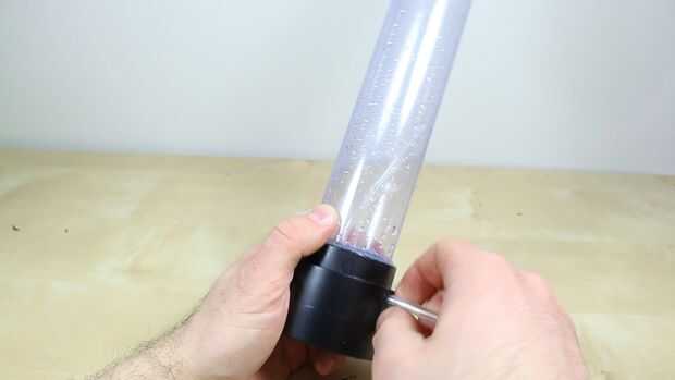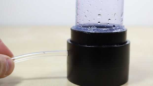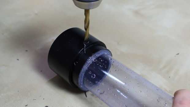 Una vez seca la silicona pensé que haría que la base de la luz a mirar un poco más presentable. Así había pegado el tubo transparente y rocía la base negra. Para asegurarse de que el tubo retiene el agua sin pérdidas me llena de agua y lo dejó para aproximadamente una hora. Después de saber que mi luz no se escapará podría seguir adelante y hacer un agujero para el tubo de la línea aérea. Me aseguré de hacer el agujero un poco más pequeño que la aerolínea real para que el agua no se escape hacia fuera alrededor de la tubería.