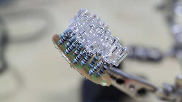 Después de determinar los valores de resistencia correcta podría seguir adelante y empezar a soldar en debajo de cada uno de los LEDS. Así que apareció la placa de circuito de la linterna y comenzó a quitar los LEDs. Una vez que se quitaron todos añadí 15 resistencias en las ranuras de negativo y luego había soldado de nuevo de llevado a como estaban antes de. Después de terminar todo lo nuevo de soldadura juntos que conectado al adaptador de CA para asegurarse de que todo funcionaba correctamente.