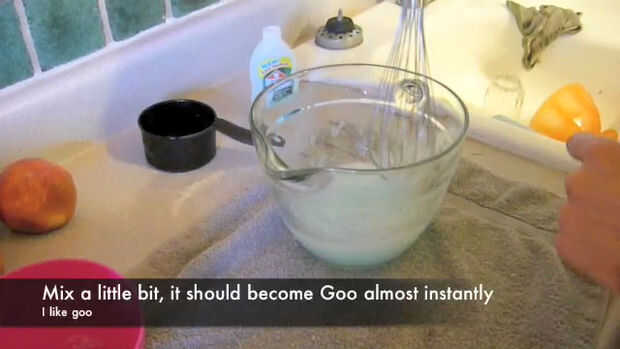 2. mezcla con tus manos por un momento, el goo forman casi al instante.