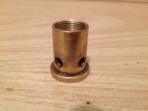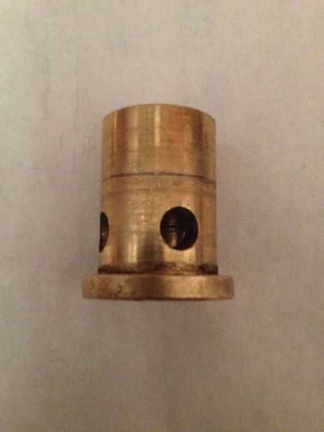 Comenzar por desmontar el acoplador rápido. Identificar la pieza cilíndrica con una brida y cuatro agujeros en un extremo (se muestra en las fotos). Es posible que algunos conectores no tienen una pieza como esta. Ya usé uno roto que yo tenía por ahí, no puedo proporciono el número de pieza exacto para él. Sin embargo, creo que de Home Depot (vinculado en la intro) debería ser suficiente, ya que parece idéntica a la mía.