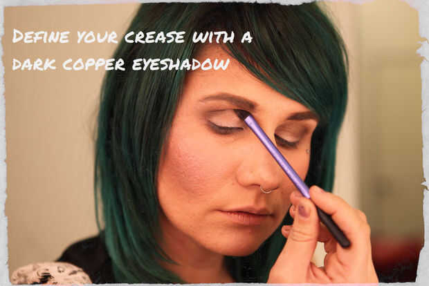 Con un cepillo grande de pliegue, mezcla una sombra cobre desde justo debajo del