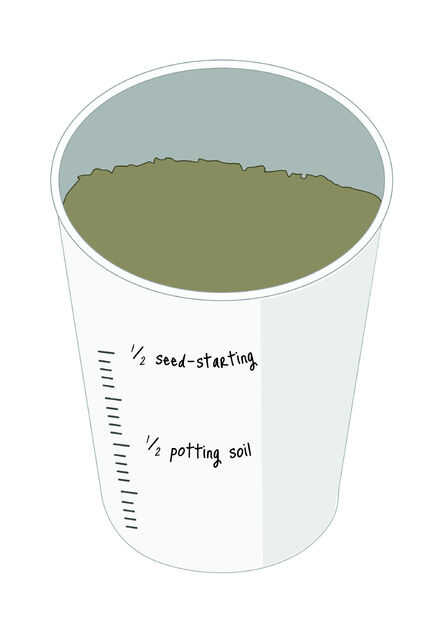 Llene la Copa con partes iguales compost y mezcla a partir de semilla. El compost debe estar en la parte inferior y permitirá mantener las semillas en la misma copa después de la germinación. Mezcla a partir de semillas es más ligero, por lo que debe ser en la parte superior, permitiendo que las frágiles plantas de semillero crecer.