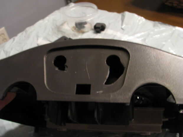 También ahora sería un buen momento para quitar el poder y botones de reajuste. Se llevan a cabo con dos pestañas y son realmente fáciles de saltar.