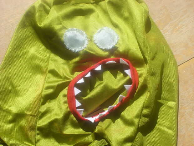 Marque un círculo donde los 2 altavoces pequeños en la parte superior y cortan un agujero a su alrededor. Haz alguna Gasa y corte 2 círculos hacia fuera cosen abajo sobre los 2 altavoces pequeños, que he añadido un iris con fieltro naranja y pupila con pluma.