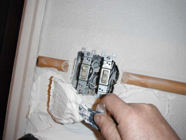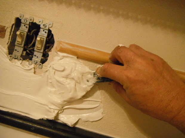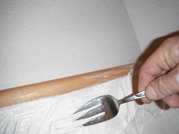 Uso común compuesto (hoja roca/repello de barro), extensión abundante entre la madera de ajuste manteniendo la parte inferior del espacio enyesada pesa más que la parte superior. Se puede experimentar con ayuda de un tenedor para el yeso a ad textura, movimiento y drama.