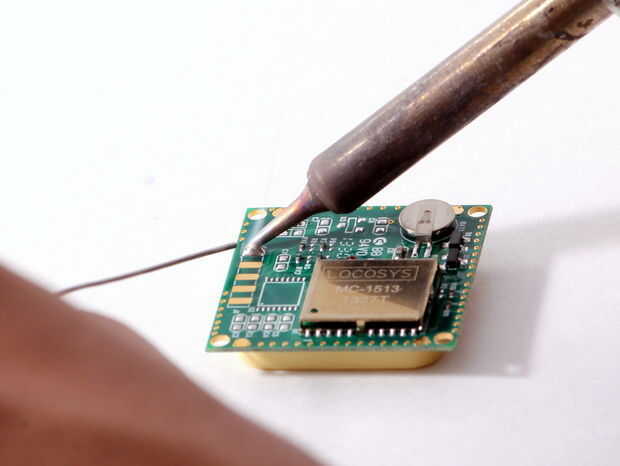 Es hora de conectar algunos encabezados a nuestro módulo GPS. Ésta parece más difícil que los otros dos, pero no te preocupes, es un juego de niños. Inicio limpieza su punta y aplicando algunos de soldadura a la primera tecla (de su elección).