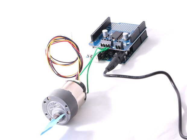 Nota: Aunque nos estamos alimentando el escudo a través del conector de barril C.C., esto no es recomendable ya que corre el riesgo de quemar las huellas finas en su Arduino. El escudo en su lugar debe ser alimentado utilizando los terminales VIn (Max 28V).