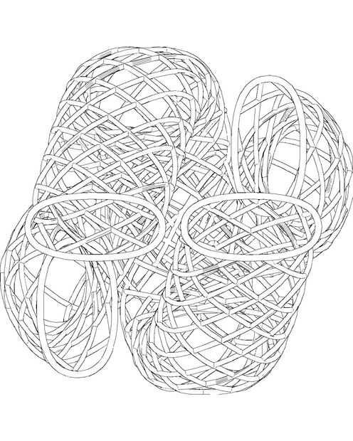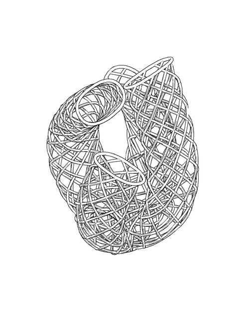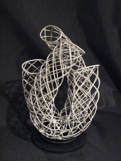 Formas y sus cerramientos estructurales pueden ser explorados en un número de maneras. Esta serie investiga un formulario simple basado en aproximadamente la mitad de una curva de Lemniscate de Bernoulli, desarrollada alrededor de 1694. Un lemnisco es Latino para "una cinta colgante", es muy similar a una curva ocho común, excepto los lazos son más elípticos. Lo interesante es qué formas emergen cuando una curva 2D se utiliza como ruta de 3D de alguna forma como una sección, como un círculo, una elipse, un cuadrado, un rectángulo o un triángulo. Además, qué sucede cuando se modifica la sección de orientación de una forma o tamaño a otra orientación de la forma y tamaño, a medida que progresa de principio a fin a lo largo de la curva. Hay un número de maneras de delinear la superficie de la forma resultante. De ligereza, algún tipo de estructura de la malla parece ser apropiado. En esta primera serie de piezas, se incorpora una rejilla diagonal. En esta escala, escritorio, estas formas podrían considerarse como floreros de aire; contenedores para mantener aire, nada de nada.