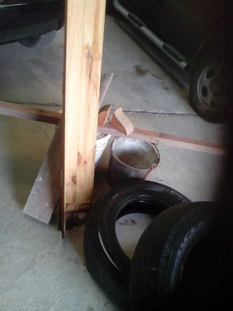 Dentro de los neumáticos va el bote de pintura vacía con un doble fondo y un tubo alto de 15cm para recargar agua, un puñado de algodón hilo de rosca como una mecha para convertir el cubo en una jardinera de self-wattering.