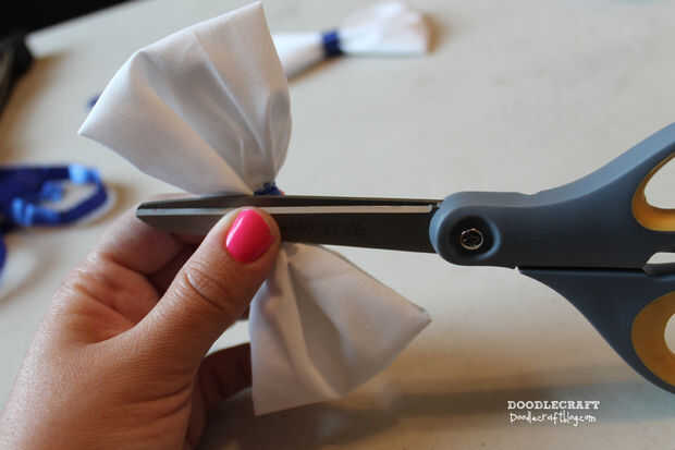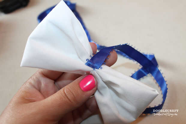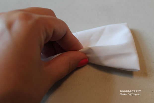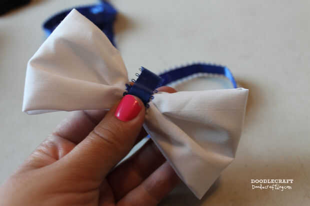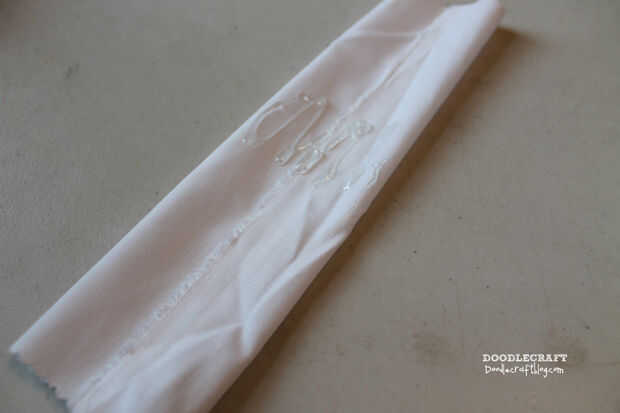 Mientras que el pegamento es scrunch todavía caliente, cuidado hasta el centro del arco.
