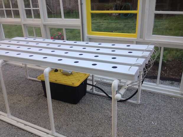 Antes en este instructable hablamos de este sistema hidropónico. Quiero sembrar una variedad de verduras. Usted puede encontrar todo este material y miles más en FarmTek.com. Es un gran sitio web que encontré que cuenta con miles de artículos de la casa verde y el servicio al cliente es genial... De todos modos, puedes ver tienen los canales, los agujeros de los potes de 2" de red, el depósito con la bomba dentro de la bomba de aire para las piedras de aire dentro del tanque. hay agua en las mangueras de suministro de flujo en los canales que están de duelo. Muchos de los sistemas que he visto sólo tienen uno. Dicen que el segundo es un back up en caso de que uno obtiene conectado. (funciona para mí). Yo he no colocado en servicio todavía porque tengo verano importante problemas de calor y fría por qué mis cosas. He añadido un ventilador extractor en un termostato, las persianas con un ventilador de entrada en el lado opuesto, cortina de tela en la parte delantera superior (70%) y en el lado oeste de la cortina tela (50%). Ha ayudado bastante pero todavía no me gusta el 100 + temps. He estado leyendo acerca de un sistema de bruma o evaporación frío, también conocido como... Refrigerador del pantano.