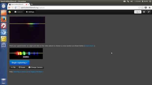 Así, vaya a spectralworkbench . Hacer un aire acondicionado de modo que usted puede guardar los datos. Continuación, vaya a comenzar captura y siga las instrucciones en pantalla. Punto de su mira telescópica a una lámpara CFL y verá un vivo en la Página Web. Trate de girar el alcance hasta obtener una muestra brillante y luego mover la barra amarilla al lugar. Asegúrese de que usted consigue verde primero y luego rojo en sus espectros cuando se mueve de izquierda a derecha (ProTip).