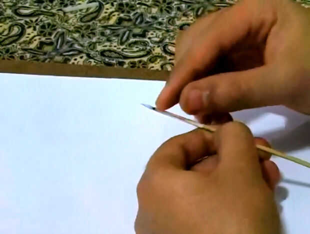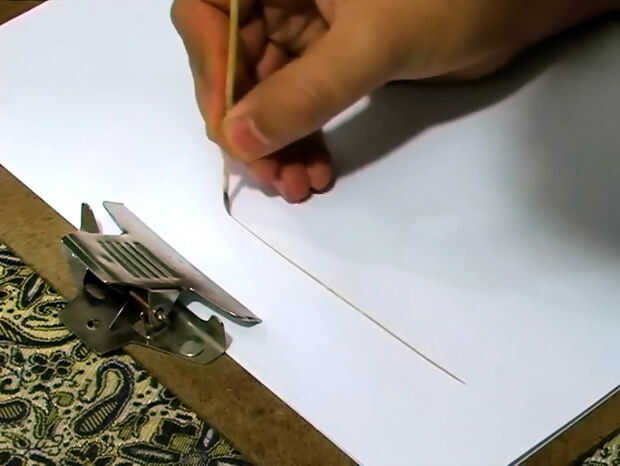 El dedo índice y el pulgar Sujete esta parte del cepillo de pelo (la parte que ves en la figura 22) y los otros tres volvemos parte de la URL de cepillo de pelo. A veces el segundo dedo, ordena el cepillo de pelo. No sujete firmemente cepillo de pelo en la mano. El otro punto, el ángulo del pincel con el papel debe tener la pendiente de 45 grados y no sostenga verticalmente que puede trazar las líneas. Así. (Figura 23)
