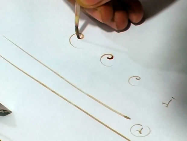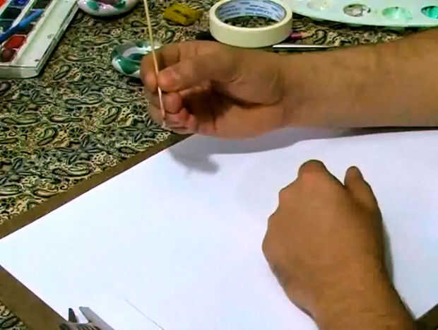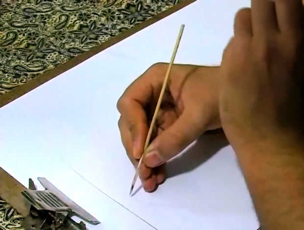 Tenemos la misma tonalidad y grueso y thinness de las líneas que teníamos en el dibujo con lapiz. La línea no debe ser cortada aquí y no tiene ninguna diferencia con el dibujo de lápiz. Pero si desea dibujar líneas firmes bonitas con cepillo de pelo, usted debe aprender cómo mantener el cepillo de pelo con la mano. Mire mi mano con cuidado. (Figura 22)