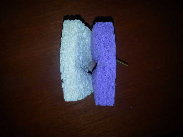 De meter su dedo entre las 2 esponjas y ajustar las esponjas para que ligeramente hacia el exterior del arco.