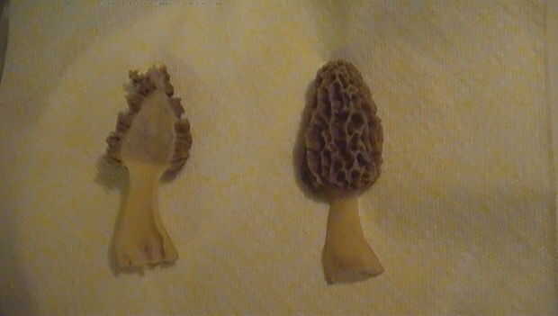 en cuadro 4 el morel de la izquierda es un real morel y observe cómo el morel de la derecha no es hueco es un falso morel