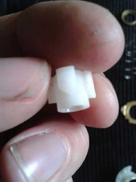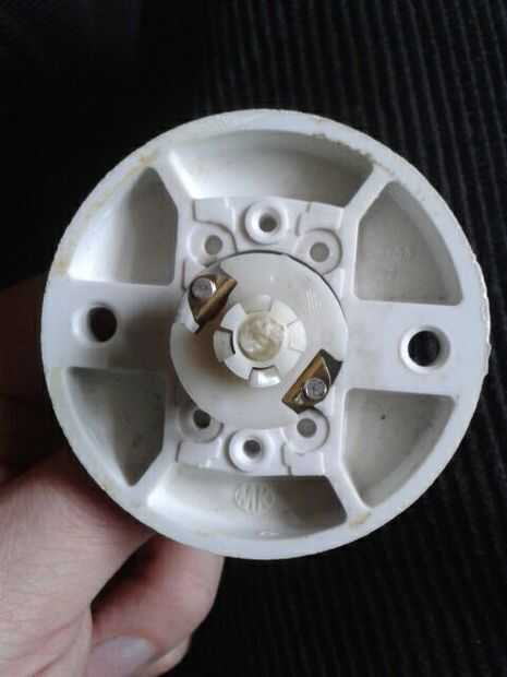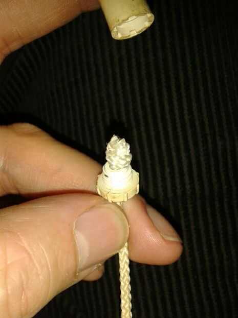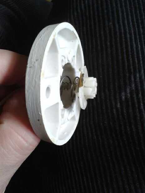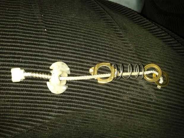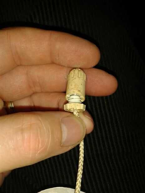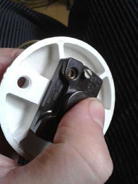 empezar por separar el conector del cable y o deshacer el nudo o cortar el cordón. El mecanismo es placa de resorte, así que es vital que mantenga las piezas como soltar los tornillos de fijación una vez quitados con cuidado liberan la presión y retire la parte posterior en este momento los terminales y contactos fijos caerán. El cable y el resto de los componentes del interruptor entonces pueden ser retiradas de la placa del interruptor, las levas fijas en la placa del interruptor ahora pueden ser limpiadas y examinadas para el desgaste. El resto de los componentes que vienen de la médula. una arandela de latón liso que actúa como superficie de rodamiento de prevenir desgaste a la placa del interruptor de plástico, una arandela de latón que forma la otra mitad de la superficie de rodamiento y tiene uno de los extremos de: el resorte grande, el conductor de cobre amarillo y contacto móvil. La placa portadora y levas, un pequeño manantial y finalmente la terminación del cable.