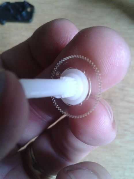 a diferencia de un reloj mecánico tradicional donde el tren de engranajes se monta entre 2 placas. El tren de engranajes para este reloj de cuarzo se montan ambos lados de una placa central intercalan entre las dos mitades de la caja. Lo primero a instalar es la manecilla de los minutos en coche. Esto es conducido por un engranaje pequeño que pasa a través de la placa de montaje.