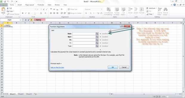 El primer paso calcular su pago utilizando la función PMT de Excel es para entrar en lo siguiente: