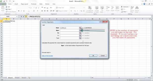 El siguiente paso es ingresar el número de pagos para la vida del préstamo.  Si usted tiene un préstamo a tres años y usted está haciendo pagos mensuales, entonces usted tendrá 36 (12 meses multiplicados por el número de años) NPER.