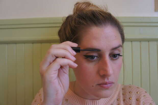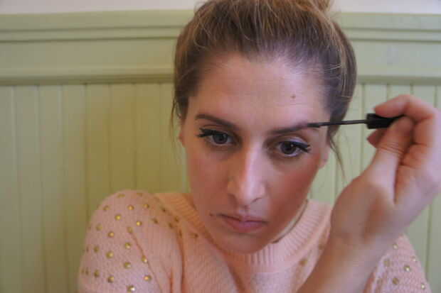 Usar mascara de frente (formalmente conocido como gimmeBrow por beneficio), peina las cejas hacia arriba y para espesar para arriba y poco y mantenga en su lugar.