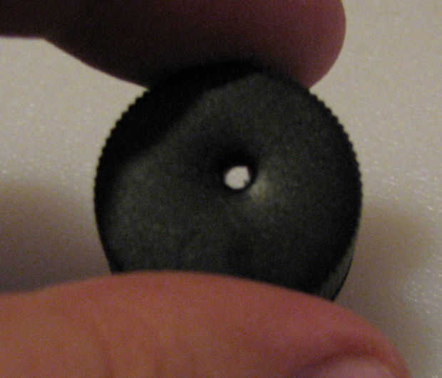 Entonces usted querrá preparar la tapa para agregar un agujero para el interruptor. Hacer agujero en la parte superior de la tapa de la botella con una perforadora (o un clavo si no tienes un golpe). Después de hace el agujero, agrande el agujero con pinzas o un archivo. Compruebe el interruptor para asegurarse de que puede activar el interruptor de encendido y apagado.