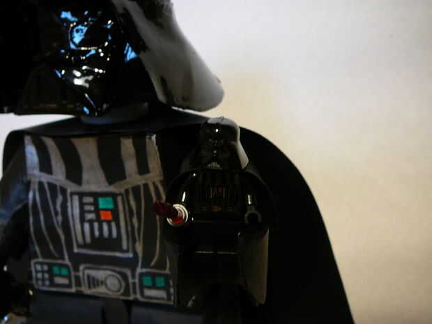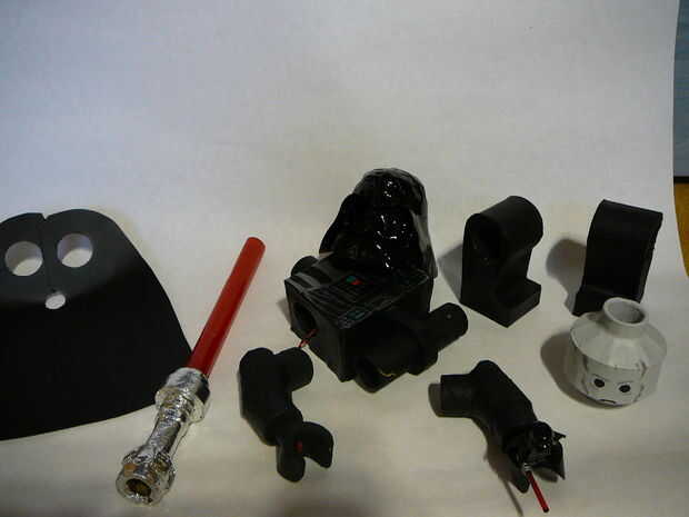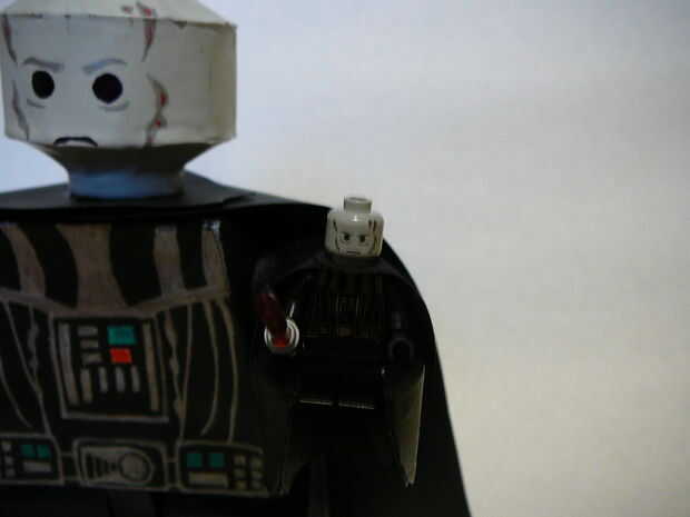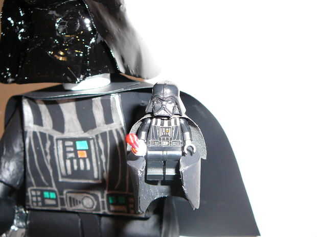 Esto es un 100% hecho en casa LEGO Darth Vader traje, creado con cartón, papel maché y pintura de aerosol. Compré un llavero de LEGO Darth Vader de la tienda LEGO en el centro comercial y utiliza para escalar las medidas y las proporciones. Este traj
