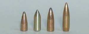 Oye se aprecia la diferencia entre la bala de caza mayor de latón y las balas de núcleo de plomo. La viñeta de la izquierda es bala de núcleo de plomo de 110 gr, la bala de caza mayor a su lado es 110 gr junto a que es una bala de núcleo de plomo de 150 gr y el último es una bala de núcleo de plomo de 180 gr. La bala de caza mayor es casi del mismo tamaño que la bala de núcleo de plomo de 150 gr y es el mismo peso que la bala de 110 gr más pequeños.
