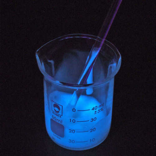 También puede mezclar pintura fluorescente que brilla en la oscuridad pero es muy brillante en la oscuridad bajo la luz UV. Usted puede comprar en muchos colores de los polvos fluorescentes: http://glowinc.com/SearchResult.aspx?CategoryID=14