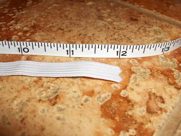 -Cortar una pieza de 3/8" trenzada elástico en una tira larga de 12". [Ver foto D]. Ponga a un lado.