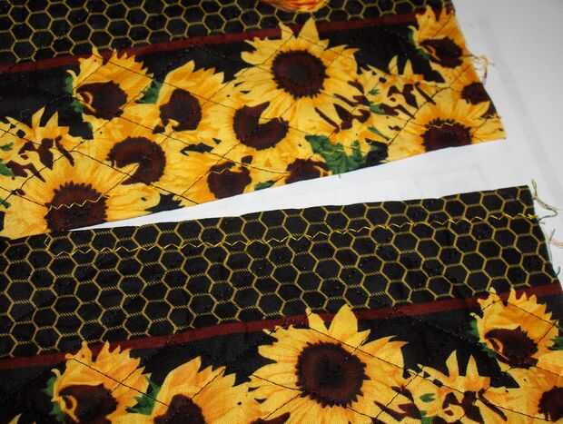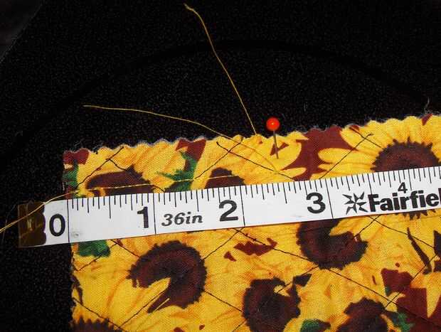 Puede utilizar una puntada para coser por encima, si te gusta, pero si estás usando un diseño de tela "ocupado", probablemente no verá la decorativa tapa-que cose. Por lo tanto, usar una puntada pequeña, recta o un pequeño zig-zag, como se muestra en la Foto B.