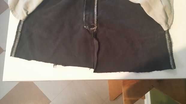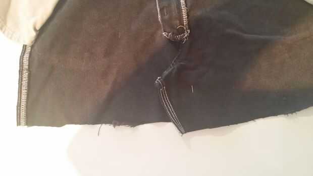 Aplanar la costura de la entrepierna. Tendrá un poco de feo traslapo dentro. Corte una vez cosido todo el material extra detrás de la costura que acaba de hacer. También unir las correas. Debe parecerse a la foto.