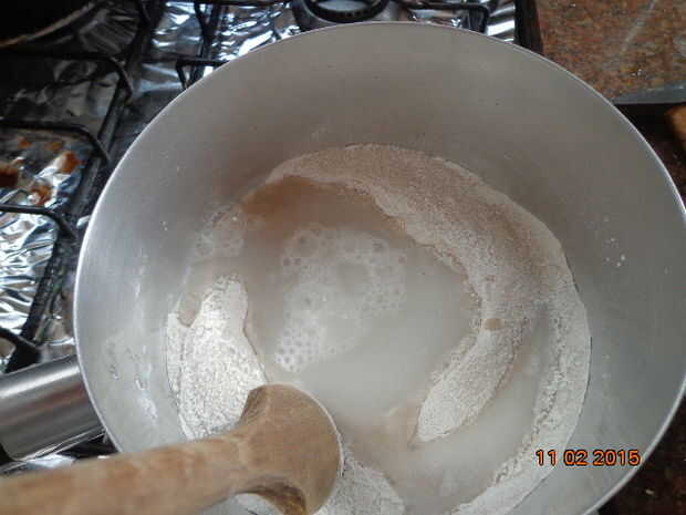 Coloque todos os ingredientes em uma panela e humedad bem (Você pode colorir una massa tan o corente nesta etapa, se quiser).