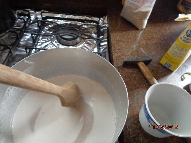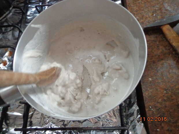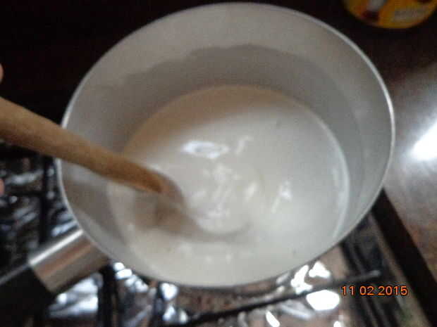 Tradução para o português: Coloque una mistura para cozinhar em fogo baixo e mexa continuamente.