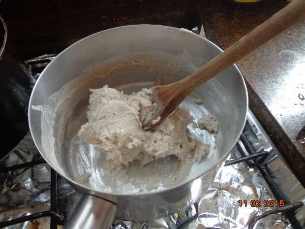 Una massa está pronta cuando sacar agregada e desgrudar da panela.