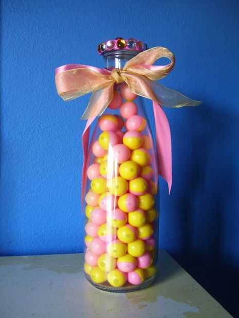 tiene un montón de bolas de pintura sobrantes de tu último viaje a la arena? Los muestra en una botella para una decoración dulce!