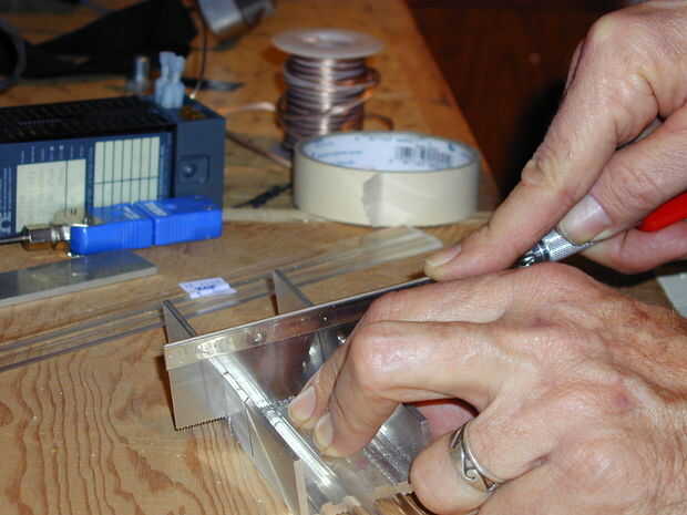 1. colocar la bisagra en la caja de ingletes y hacer un corte firme pero poca profundidad en incrementos de 1/2". No es necesario cortar a través de todo el camino.
