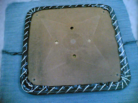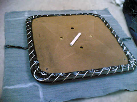 Puso la silla por encima de las piezas y con una tiza dibujar cuadrados como se muestra a cortar