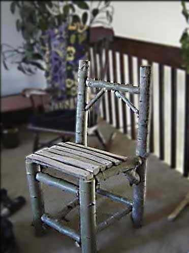La silla es similar a la del taburete del pie; sólo sustituir sucursales más para el respaldo. Usé apoyo ramas cortadas en ángulos de 45 grados aproximadamente para apoyar el respaldo y el asiento. Ramas de banana split, alineados, formado del asiento cóncavo. Nota aquí que la corteza quedó solo como una variación.